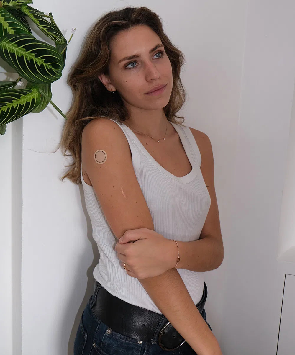 Retirez délicatement le patch de son support et appliquez-le sur une zone de peau propre, sèche et sans poils.
