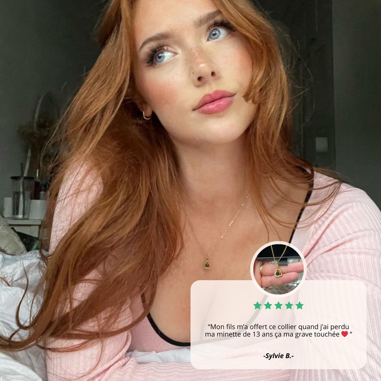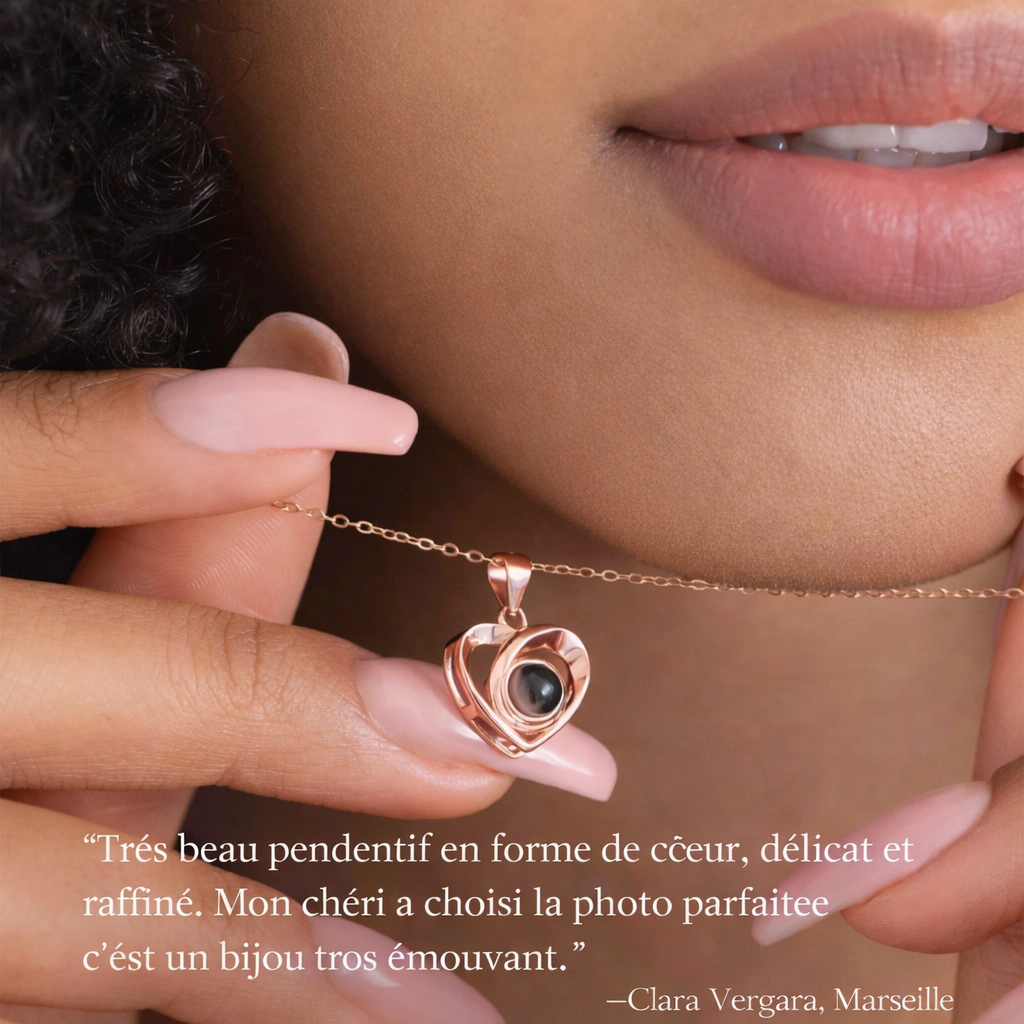 Loveora - Collier Cœur Croisé Photo Éternelle